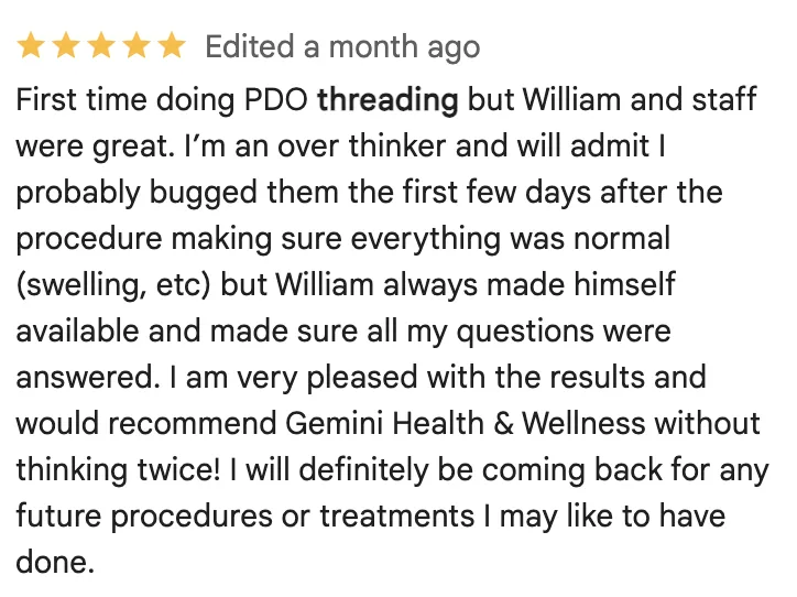 At Gemini Health & Wellness, William and his expert team deliver care that’s elevated, personal, and transformative—where beauty, science, and compassion meet.